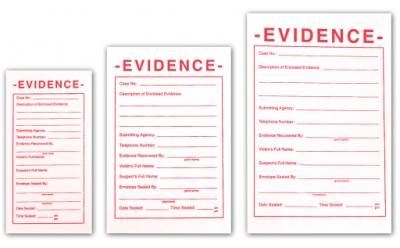Our evidence envelopes are used for securing small evidence such as hairs, fibers, or even lifted print backing cards. Custom-printed evidence envelopes are also available. For more information, see our Custom Products page or contact one of our customer service representatives.