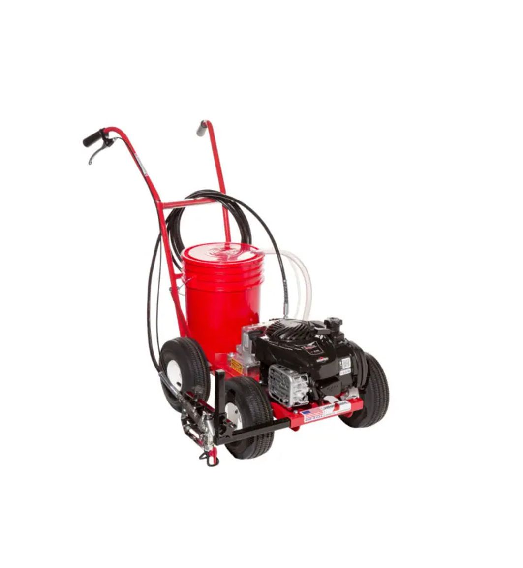 The lightweight design of 105 lbs. makes it easy to push across the roughest athletic fields while producing bright, straight 2”-6” wide lines. Plus, the 3000 psi adjustable pressure pump lets you spray without wasting paint. Easy to use, handle mounted controls let you quickly and efficiently stripe without time consuming and costly set up.