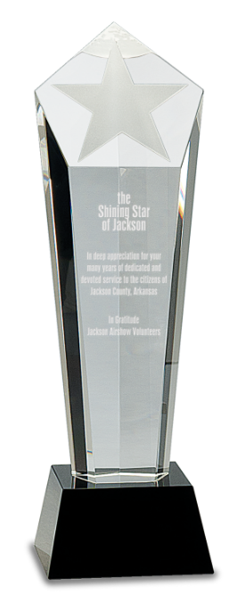 Premier Crystal Frosted Star Column mounted on a Black Crystal Pedestal