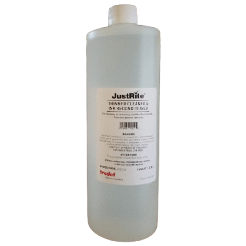 Characteristics: The JustRite Re activator thinner is formulated with the same solvent system used in the inks; only the color is eliminated. Thinners can be mixed with the ink to speed up drying time, or they can be applied to a stamp pad in order to rejuvenate it. They can also be used to clean equipment and stamps.