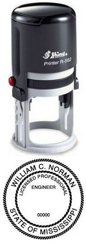 Mississippi Engineering stamps are made to your state specifications which can vary from 1-5/8” diameter to a 2” inch diameter impression area.