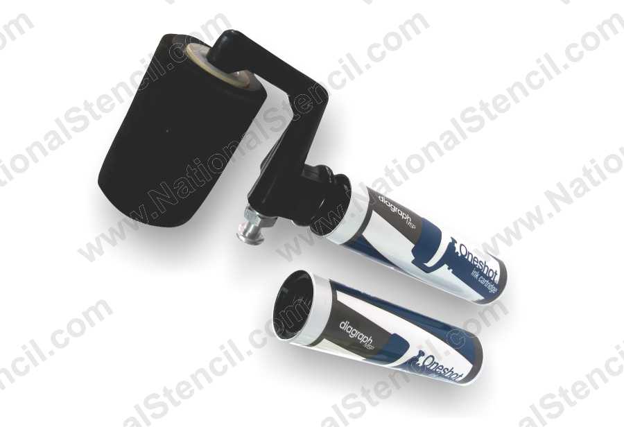 Oneshot® Stencil ink roller marking system is ideal for any letter, number or custom stencil marking solution. All you have to do is attach the ink cartridge to the roller head, pump the trigger and you have a neat and efficient marking system. The roller assembly features a durable neoprene roller. The valve-action pump as shown in the photo controls the ink saturation.