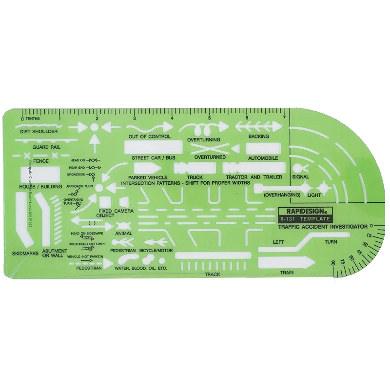 Our plastic templates aid in these drawings by giving investigators correct proportion and uniformity in sketches.